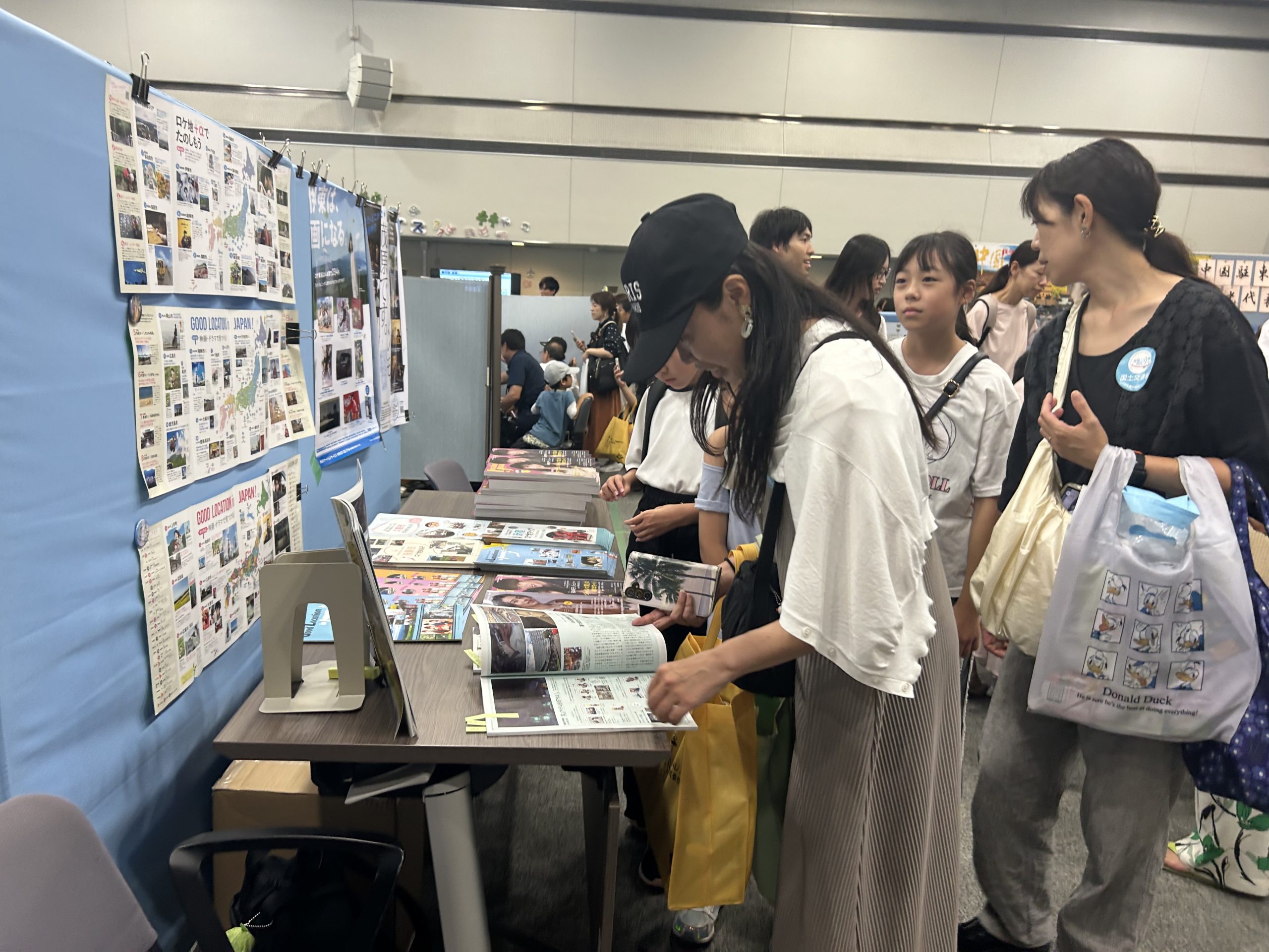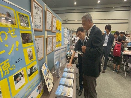 各地域のブースでは、ロケ地マップの配布やポスター掲示、自治体職員による地域紹介などが行われた。子どもたちは『名探偵コナン』のポスターや『ゆるキャン△』のキャラクターパネルと写真を撮ったり、島原市を訪れた芸能人のサインに見入ったりと、興味津々の様子。